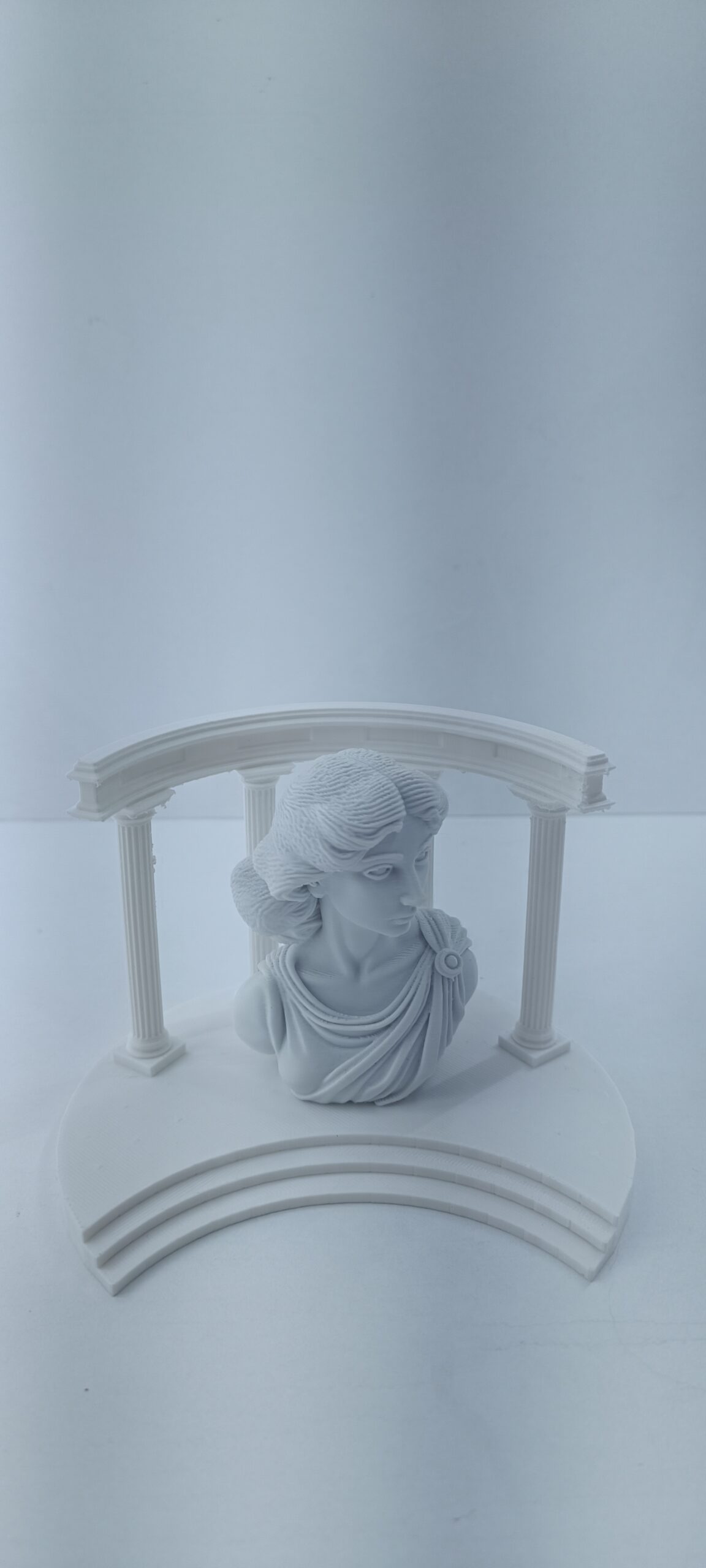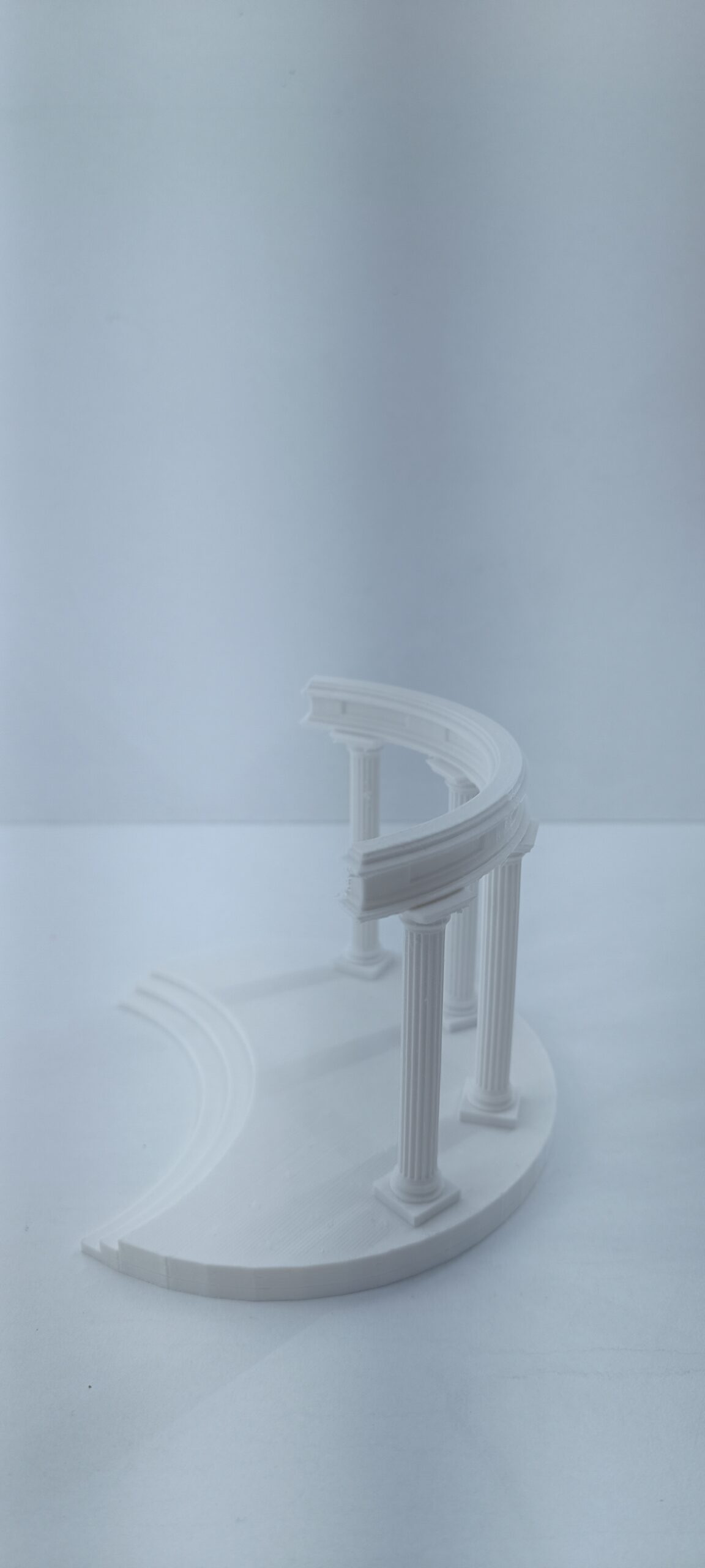 Antik Yunan mimarisinin zarif sütunlarından ilham alan bu dekoratif platform, sergilediğiniz objeleri küçük bir sahne etkisiyle ön plana çıkarır. Yarım daire formundaki basamaklı tabanı ve sütunlu kemer yapısı, klasik mimarinin estetik çizgilerini modern dekorasyonla buluşturur.