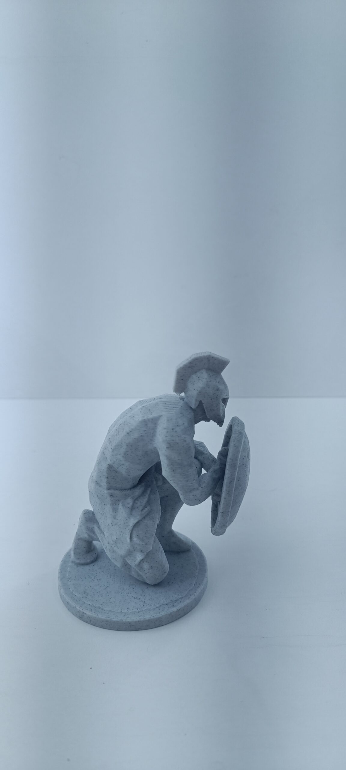 Antik Yunan savaşçılarının disiplinini ve kararlılığını temsil eden bu dekoratif heykel, Spartalı bir hoplitin savaş öncesi duruşunu yansıtır. Diz çökmüş pozisyonda kalkanına yaslanan savaşçı figürü, yalnızca bir savaşçıyı değil; sabrı, direnci ve kararlılığı simgeler.